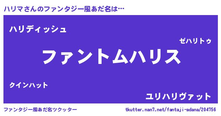 | ポケモン風あだ名 | 『ヒハリマ』『ゼニハリ』『ハリゴンZ』 |