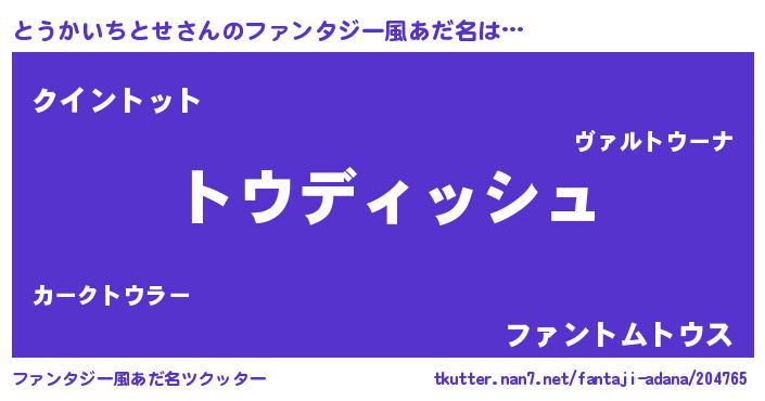 | ヒーロー風カッコイイあだ名 | 『ネオトウカイチトセ』『幻影騎士トウ』 |