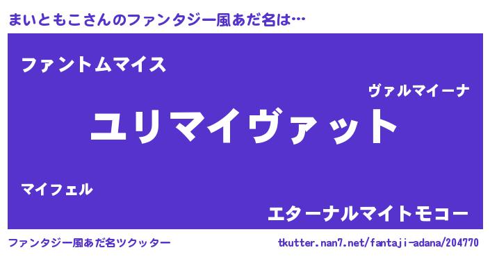 | 男性向けラノベタイトル風あだ名 | 『まいともこ~年齢イコール彼女いない歴の魔法使い~』 |
