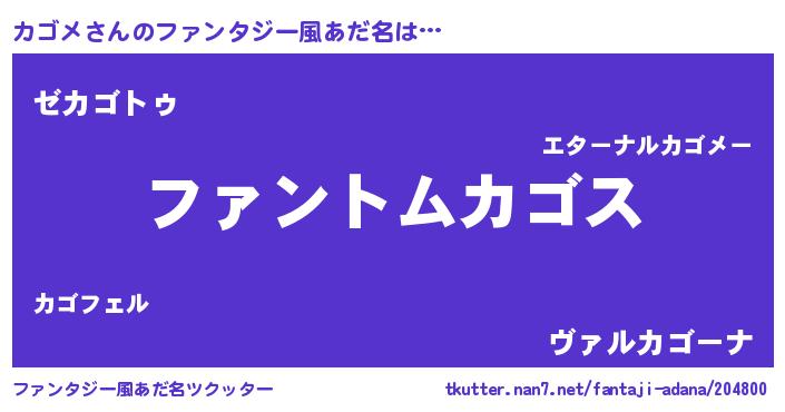 | ヒーロー風カッコイイあだ名 | 『幻影騎士カゴ』『超時空戦士カゴメ』 |