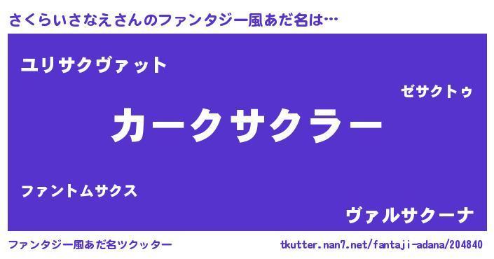 | 男性向けラノベタイトル風あだ名 | 『さくらいさなえに滅ぼされるだけの簡単なお仕事です』 |