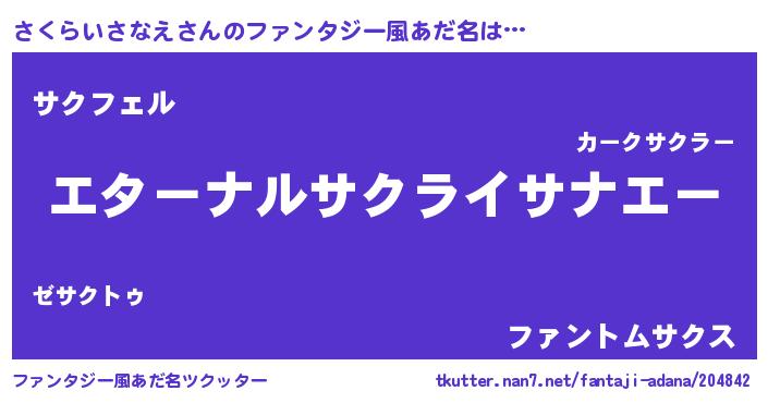 | 意味不明あだ名 | 『さくらいさなえフォーエバー』 |