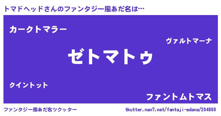 | 意味不明あだ名 | 『自称トマドヘッド』 |