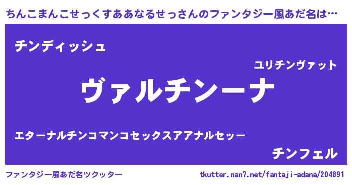 | 欧米人風あだ名 | 『ダレノガレちんこまんこせっくすああなるせっ』 |