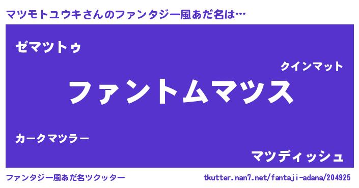 | ポケモン風あだ名 | 『ヒマツモトユウキ』『マツゴンZ』 |