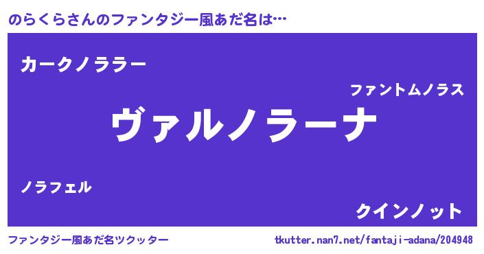| 男性向けラノベタイトル風あだ名 | 『魔弾の王とのらくら』 |