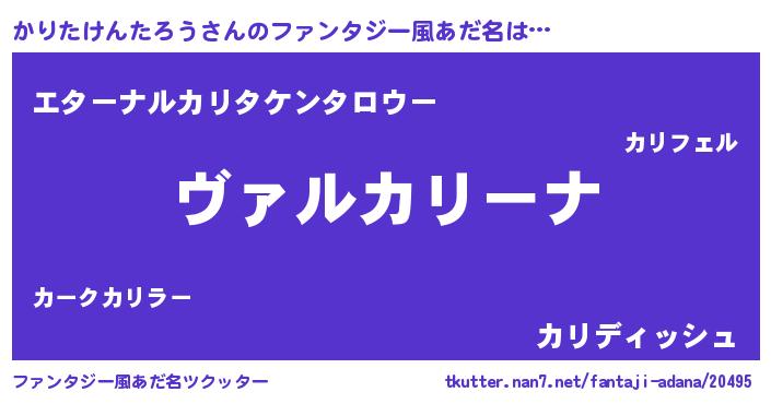 | 女子向けラノベタイトル風あだ名 | 『乙女ゲームの破滅フラグしかない悪役かりたけんたろうに転生してしまった…』 |