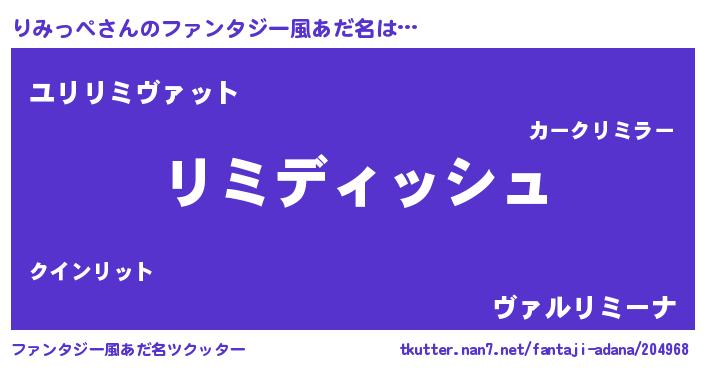 | 男性向けラノベタイトル風あだ名 | 『りみっぺという概念が存在しない退屈な世界 』 |