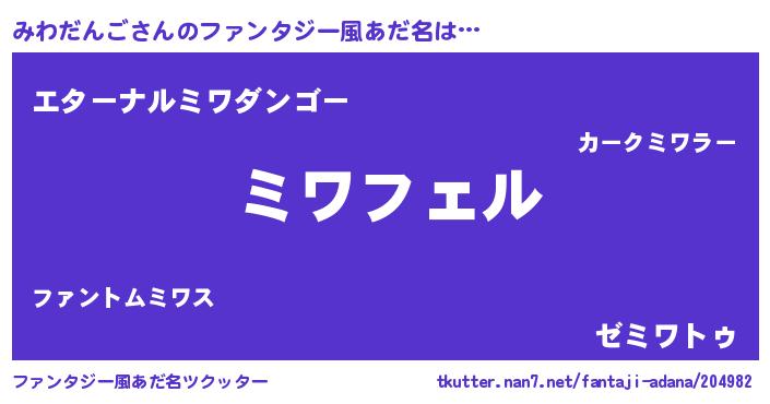 | 伝説のあだ名 | 『封印されし竜騎士みわだんご』 |