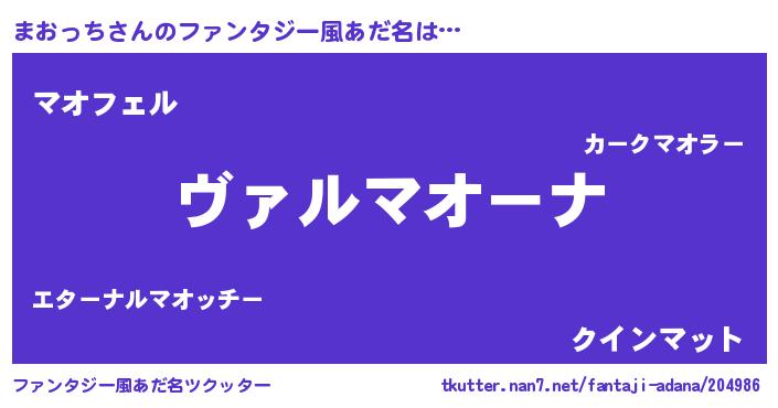 | 男性向けラノベタイトル風あだ名 | 『この素晴らしい世界にまおっちを!』 |