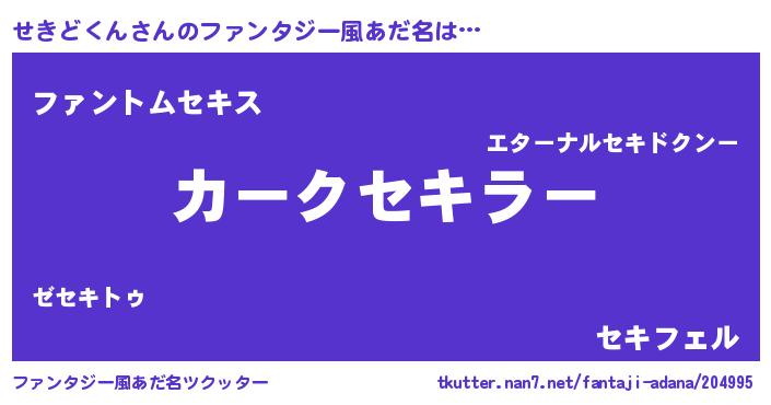 | 意味不明あだ名 | 『とにかく怪しいせきどくん』 |