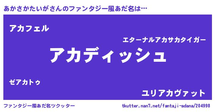 | ヘコむあだ名 | 『あかさかたいが(笑)』『あかにー』 |