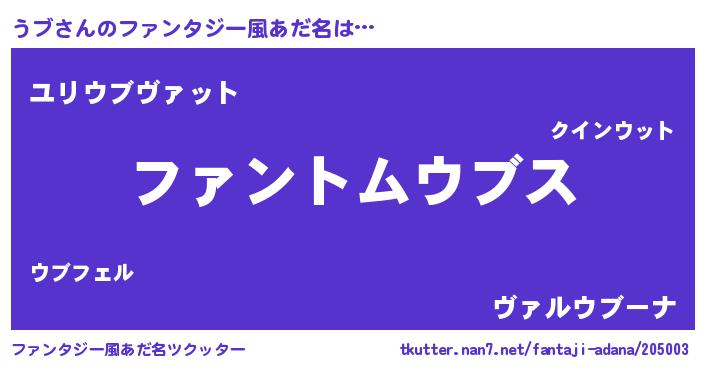 | ヒーロー風カッコイイあだ名 | 『魔戒騎士ウブ』『仮面ウブダー』 |