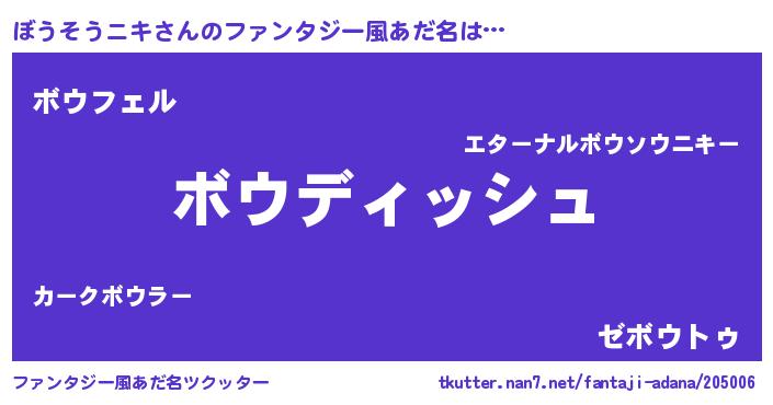 | ヘコむあだ名 | 『ぼうそうニキ(笑)』『ぼうにゅー』 |
