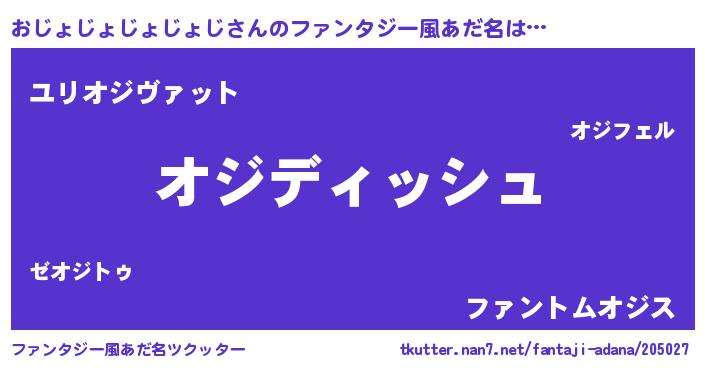 | 男性向けラノベタイトル風あだ名 | 『おじょじょじょじょじという概念が存在しない退屈な世界 』 |