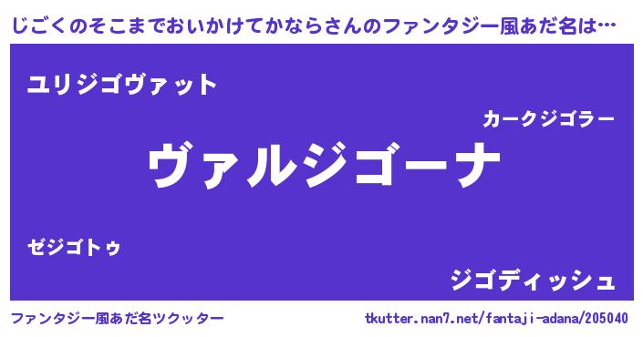 | 男性向けラノベタイトル風あだ名 | 『魔弾の王とじごくのそこまでおいかけてかなら』 |