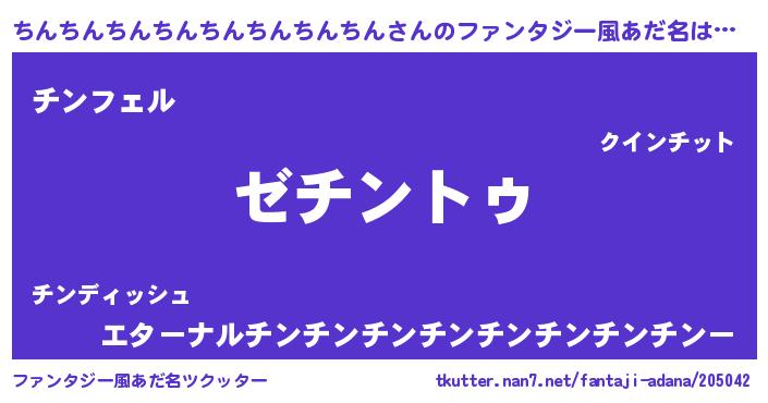 | ヒーロー風カッコイイあだ名 | 『究極戦士チンチンチンチンチンチンチンチン』 |