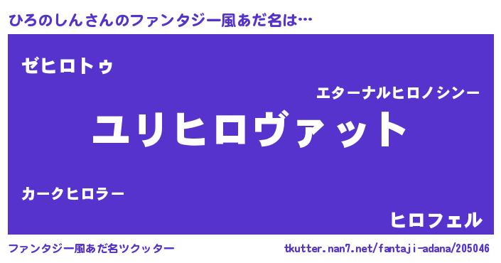 | 男性向けラノベタイトル風あだ名 | 『ヒロノシンスレイヤー』 |
