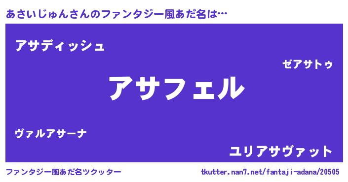 | 欧米人風あだ名 | 『アンジェラ・あさいじゅん』 |