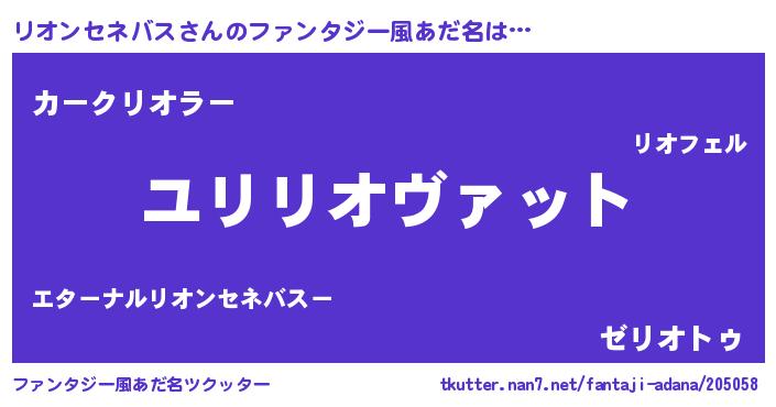 | 男性向けラノベタイトル風あだ名 | 『リオンセネバススレイヤー』 |