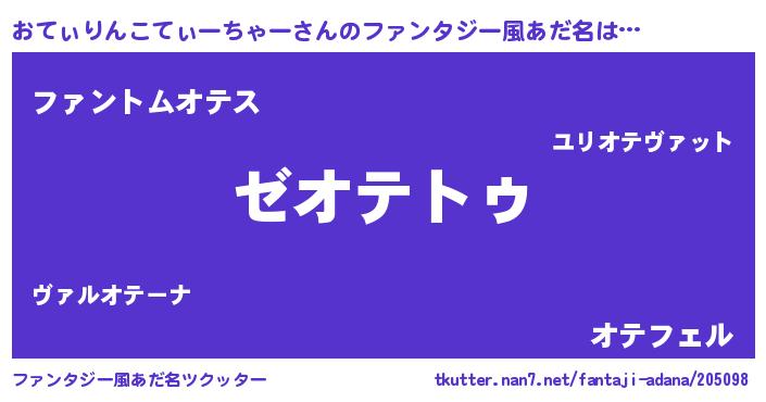 | 意味不明あだ名 | 『自称おてぃりんこてぃーちゃー』 |