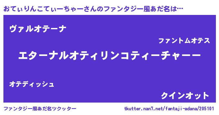 | 欧米人風あだ名 | 『おてぃりんこてぃーちゃークリステル』 |