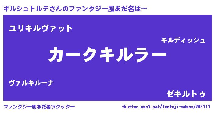 | ヘコむあだ名 | 『キルシュトルテ(笑)』『キルもー』 |