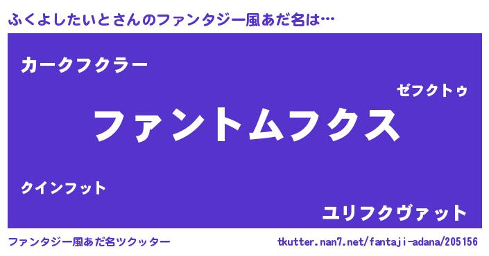 | 欧米人風あだ名 | 『ウサインふくよしたいと』 |
