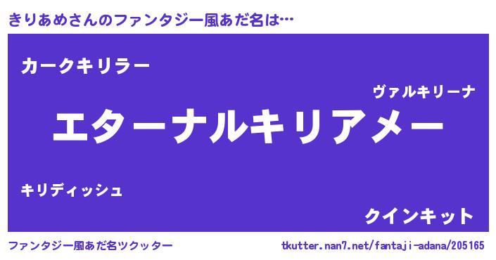 | 意味不明あだ名 | 『きりあめフォーエバー』『自称きりあめ』 |