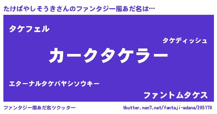 | 欧米人風あだ名 | 『たけばやしそうき・ステッグマイヤー』 |
