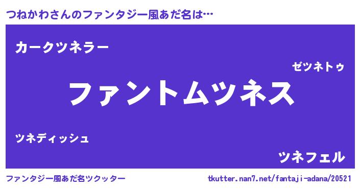 | 男性向けラノベタイトル風あだ名 | 『ダンジョンにつねかわを求めるのは間違っているだろうか』 |