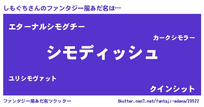 | 胡散臭い通販商品みたいなあだ名 | 『来世でも幸せになれる健康食品…その名も「しもぐち」』 |