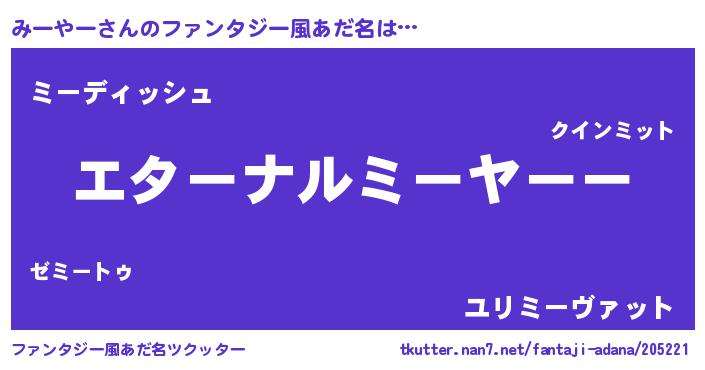 | 欧米人風あだ名 | 『みーやークリステル』 |