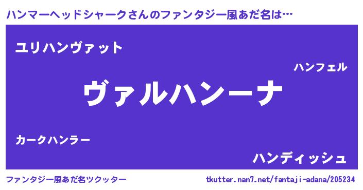 | 女子向けラノベタイトル風あだ名 | 『ハンマーヘッドシャークが死なない童話 林檎のハンマーヘッドシャークの診療簿』 |