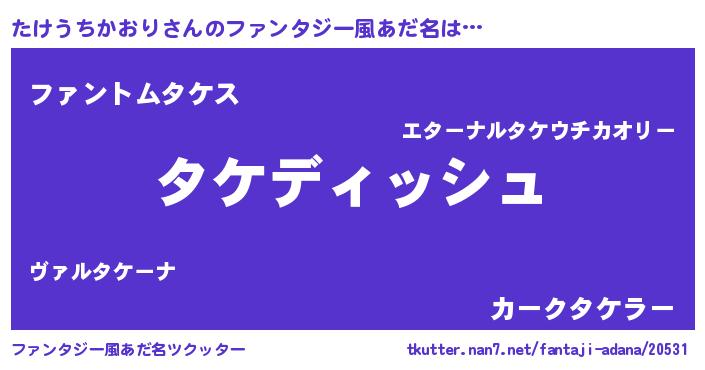 | ヒーロー風カッコイイあだ名 | 『ネオタケウチカオリ』『幻影騎士タケ』 |