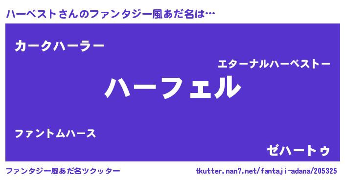 | 男性向けラノベタイトル風あだ名 | 『ハーベストの憂鬱』 |