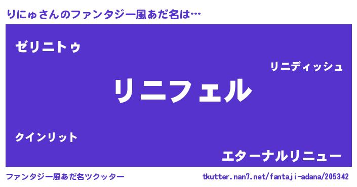 | 意味不明あだ名 | 『ペロリンりにゅ』『自称りにゅ』 |