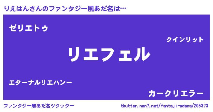 | 女子向けラノベタイトル風あだ名 | 『りえはん姫と円卓の騎士』 |