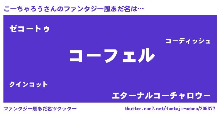 | 女子向けラノベタイトル風あだ名 | 『こーちゃろう姫と円卓の騎士』 |