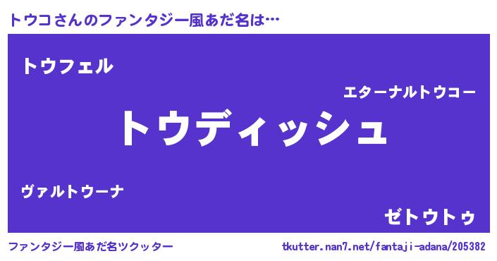 | ヘコむあだ名 | 『トウコ(笑)』『トウにー』『トウお』 |