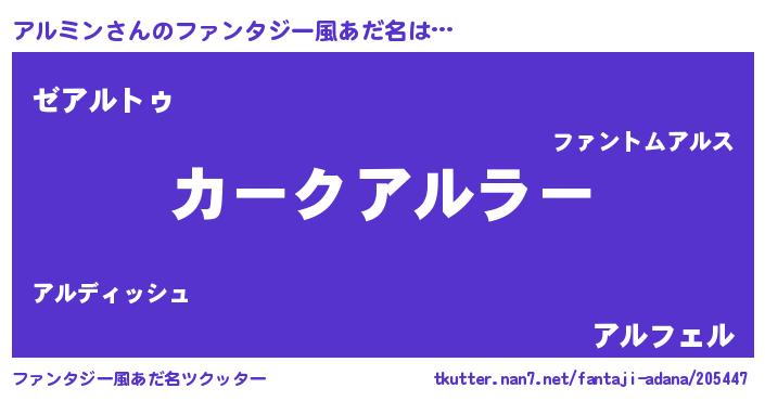 | 欧米人風あだ名 | 『アンジェラ・アルミン』 |