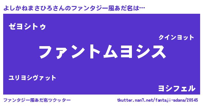 | ポケモン風あだ名 | 『ヒヨシカネマサヒロ』『ヨシセウス』 |
