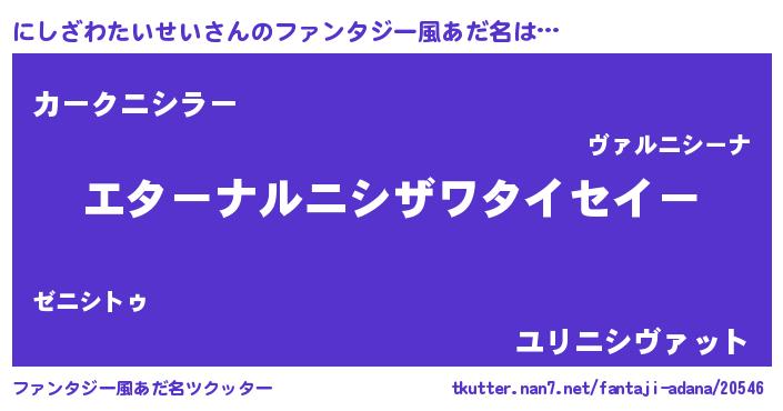 | 女子向けラノベタイトル風あだ名 | 『にしざわたいせいの雑貨屋さん』 |