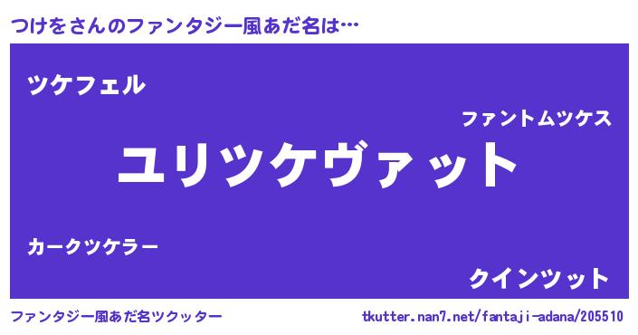 | ヒーロー風カッコイイあだ名 | 『スーパーツケヲ』『天空の使者つけを』 |