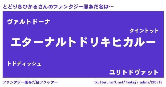 | 男性向けラノベタイトル風あだ名 | 『うちの娘の為ならば、俺はもしかしたらとどりきひかるも倒せるかもしれない。』 |