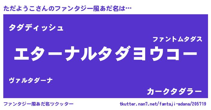 | 女子向けラノベタイトル風あだ名 | 『ただようこの婚約者』 |