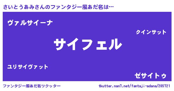 | 女子向けラノベタイトル風あだ名 | 『(仮)さいとうあみのやんごとなき事情』 |