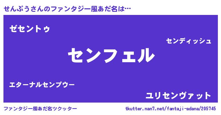| 男性向けラノベタイトル風あだ名 | 『センプウアートオンライン』 |
