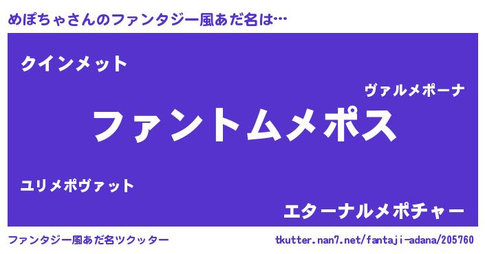 | ヒーロー風カッコイイあだ名 | 『暗黒騎士メポ』『天空の使者めぽちゃ』 |