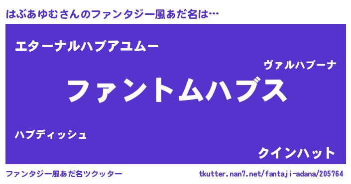 | 男性向けラノベタイトル風あだ名 | 『はぶあゆむに滅ぼされるだけの簡単なお仕事です』 |